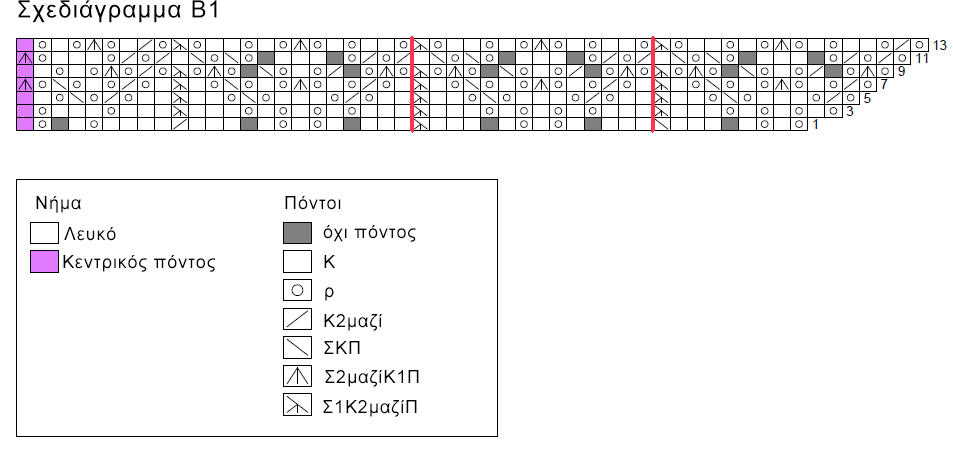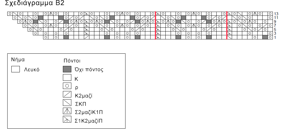 Έτσι, όταν πλέκουμε τα σχεδιαγράμματα Β1 και Β2 πλέκουμε ως εξής: